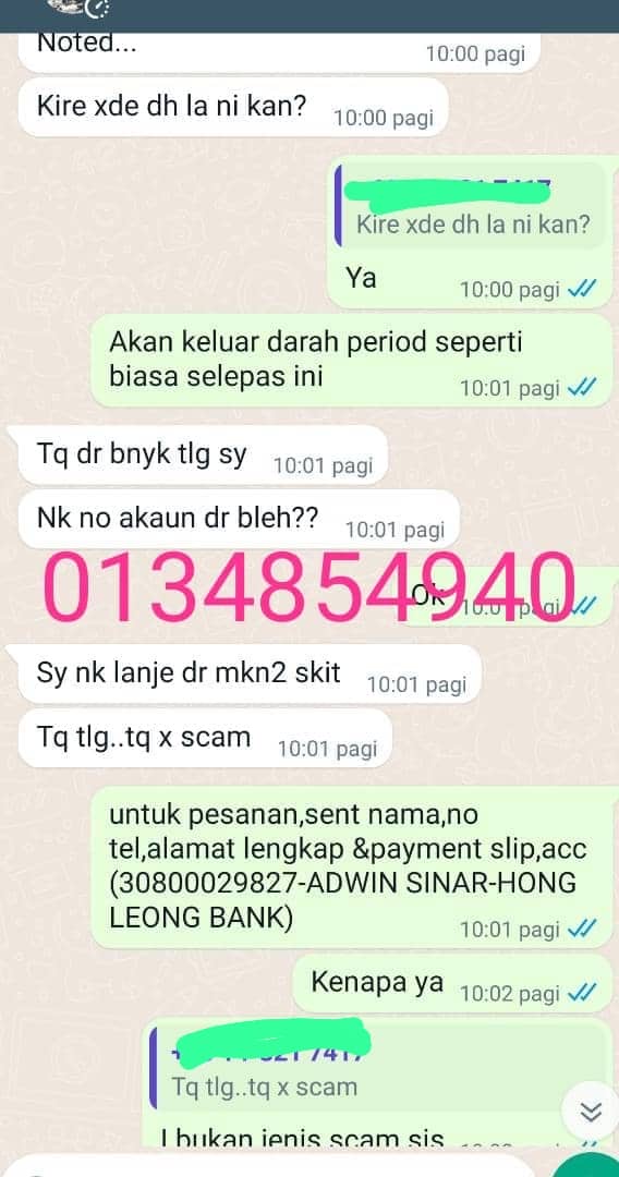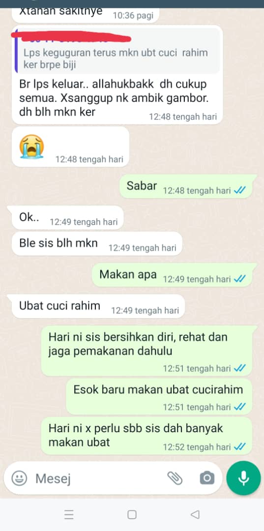 “Aku ni jenis cerewet dan aku pernah di scam dalam pembelian ubat gugur,jadi untuk mula berurusan aku agak was – was,tanya lain,nak videocall lihat ubat satu hal,tapi doktor sangat profesional sabar melayan karenah aku ni,dr azim relax je bagi penerangan satu persatu, aku sangat t.kasih pada drazim dan juga produk sangat cepat berkesan,korang kalau ada masaalah kehamila datang atau hubungi drazim ni,sangat trusted.tq